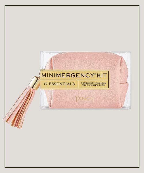 The perfect kit for your purse or car! Has a little towelette for nail polish remover, bandaids, mirror, needle & thread, earring backs, hair ties and so much more. 17 pieces!