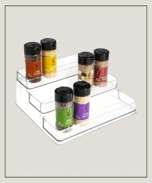 Spruce up your spice racks (or your organizing friend’s spice racks) with these clean-cut acrylic spice racks. They fit perfectly in the standard-sized cabinet – you will need at least two!