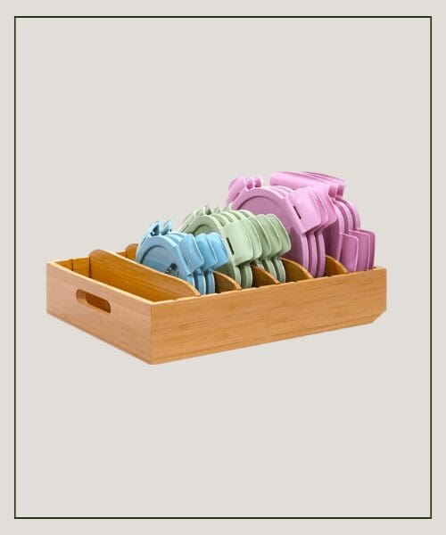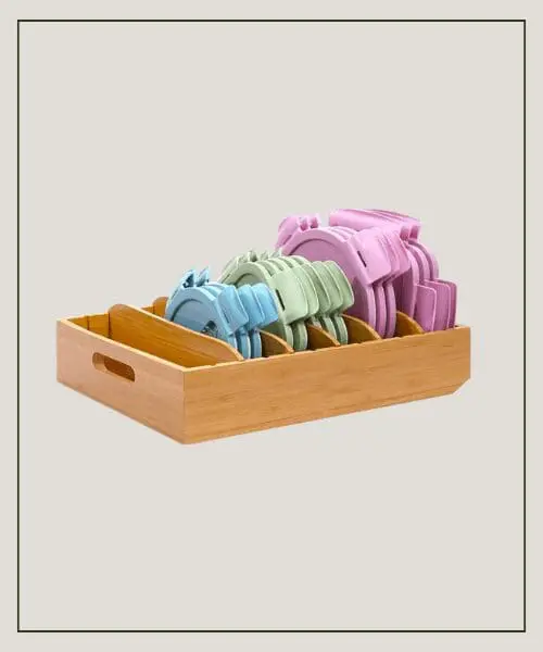 Contain the Tupperware lids in one place – AND have it be pretty. If you have the dreaded lid drawer, you need this!