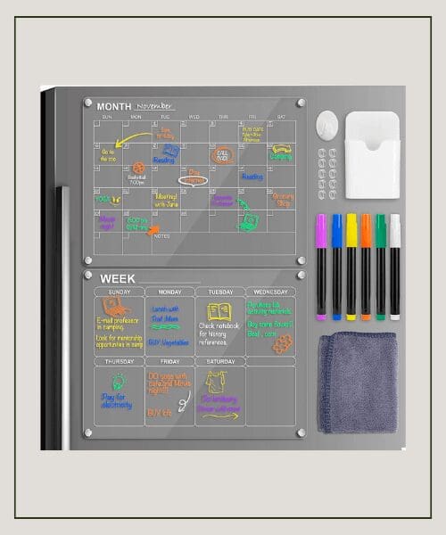 This calendar will change your life forever. It’s magnetic and comes with markers, a pen organizer, and two acrylic calendars so your family can keep all the activities and events where everyone can see them. A must have this season!