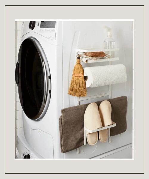 When I saw this, my jaw dropped. This washing machine rack is genius for any laundry room, and since it’s built from powder-coated steel, it’s super-sturdy and water-resistant.
