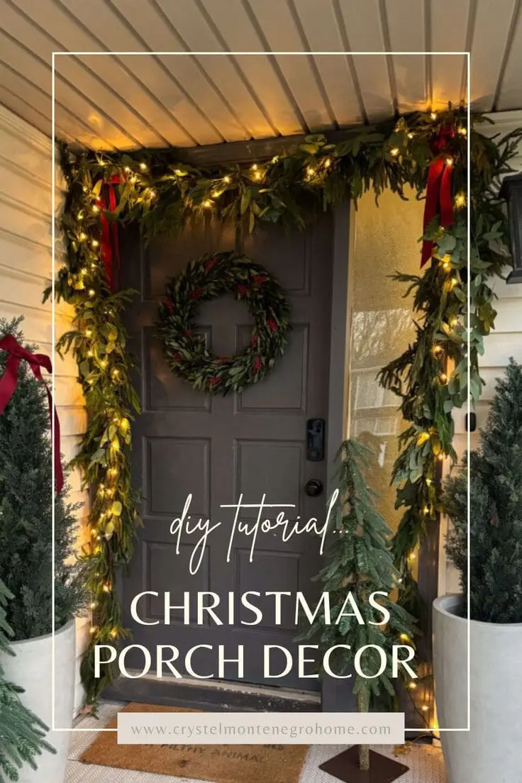 I love using faux eucalyptus and pine garlands – they’re lush, realistic, and timeless. These staples not only elevate my small Christmas front porch but also look incredible draped over windows or mantels indoors.