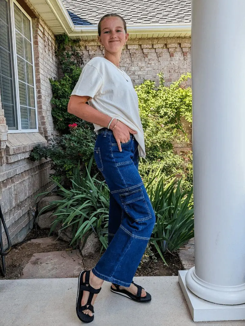 My Niece Jenna – Graphic Tee / Cargo Jeans / Black Sandals