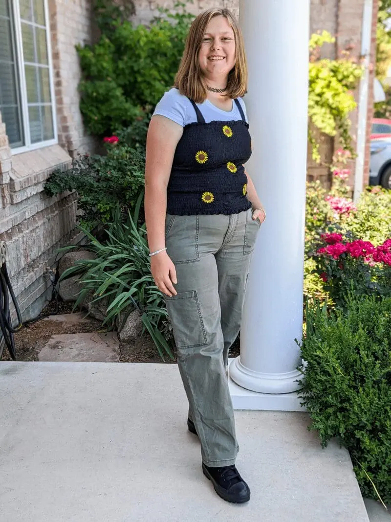 My Great-Niece Tori – Smocked Tank Top / Hi Top Sneakers / Wide Leg Jeans