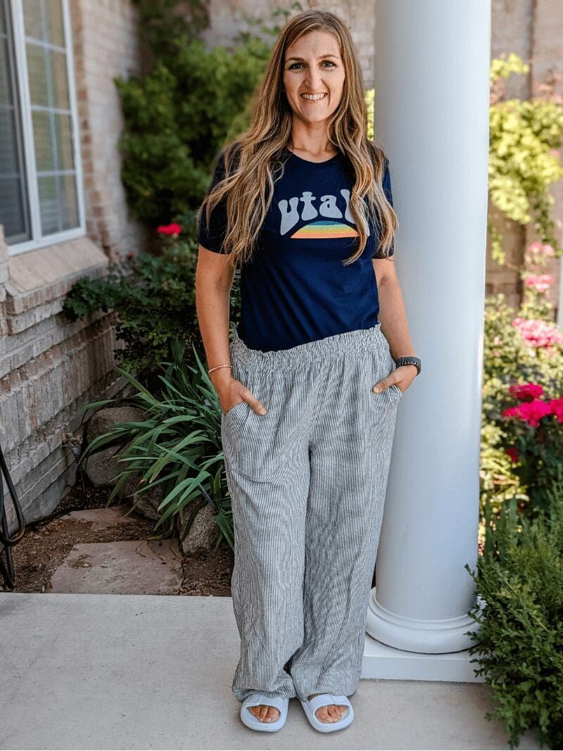 My Niece Nichole – Smocked Linen Pants / Comfort Slide Sandals