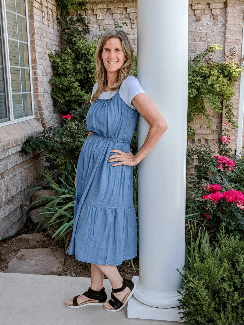 Sister-in-Law Sara Ann – Midi Dress / Twisty Sandals