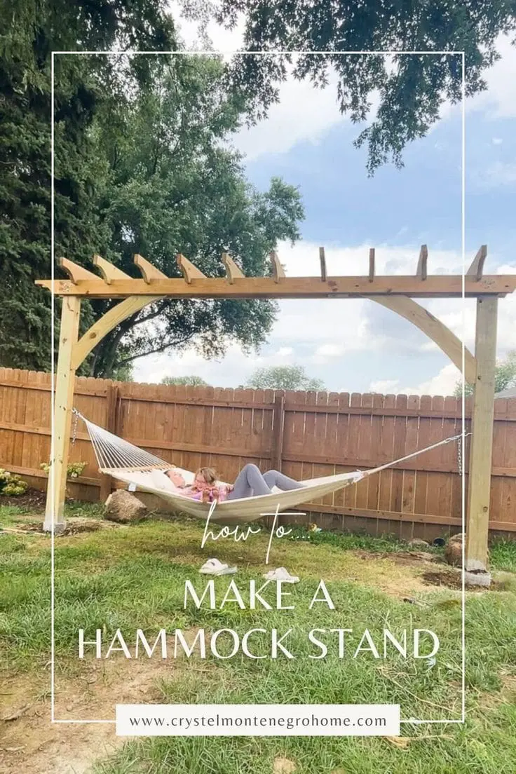 Looking to build your own backyard hammock stand? You’ve come to the right place! Last summer I jumped into all kinds of projects in our backyard to make it into a peaceful oasis that would be an extension of our indoor living space. We added a patio, built garden boxes, installed flower beds, and a lawn watering system, but nothing is as dreamy and relaxing as this hammock.
