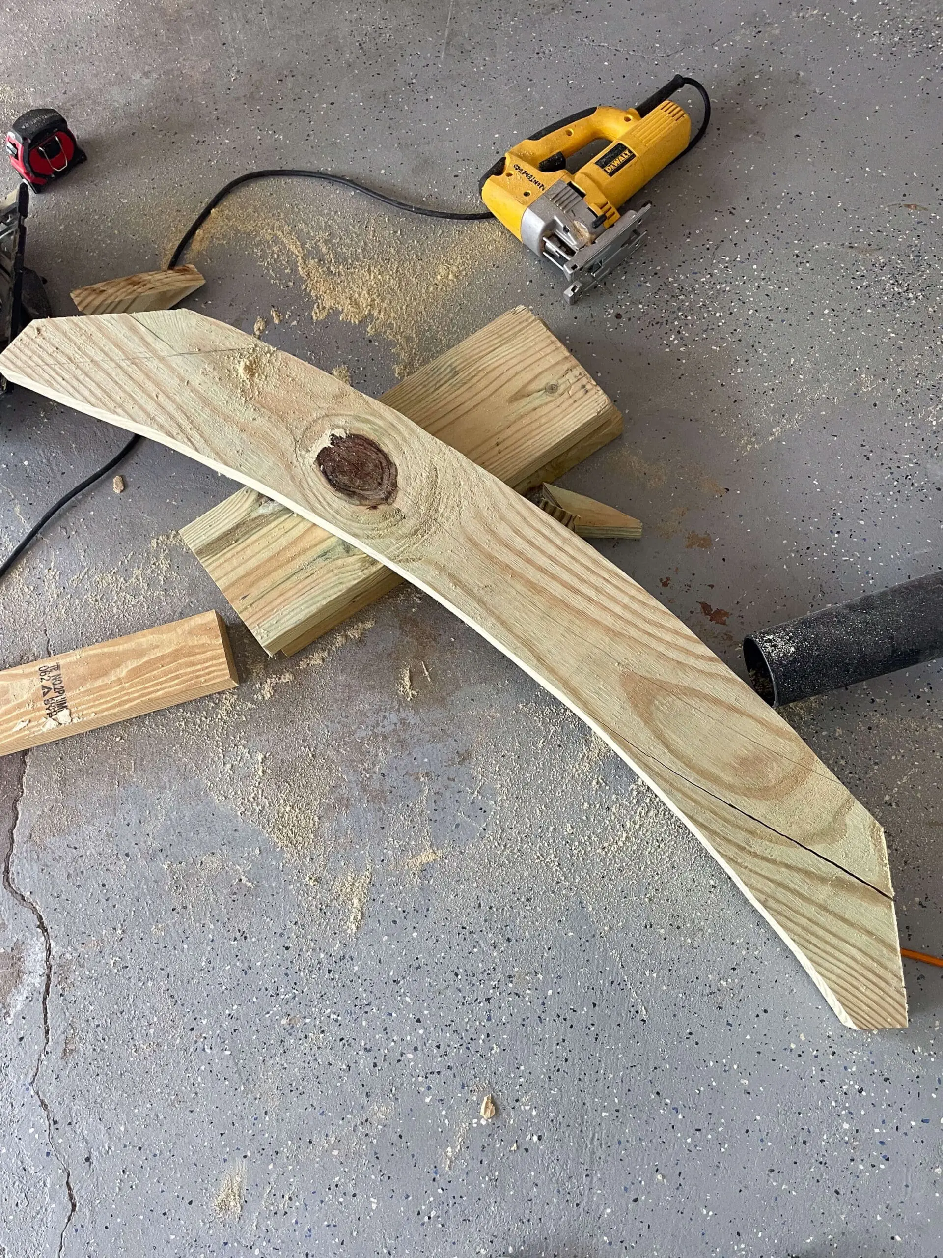 To create the arch details for my backyard hammock stand, I am starting with a 2×12.