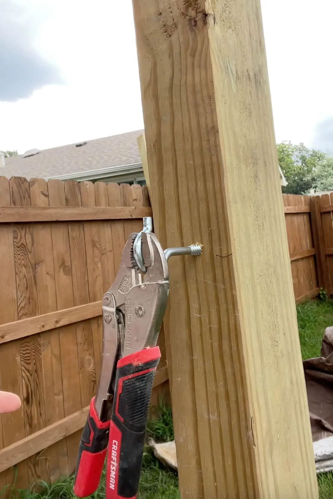 To add the hooks for your hammock, just drill a small pilot hole that is smaller than the threaded part of the hook that you are going to use. Then twist the hook into the hole. A regular pair of pliers can be used for holding the hook while you twist, but a pair of locking pliers will make it a breeze.
