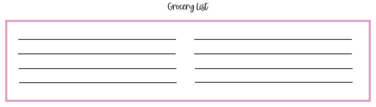 Grocery list: I will usually transfer this list to the whiteboard I have on the side of my fridge where I keep my working grocery list.