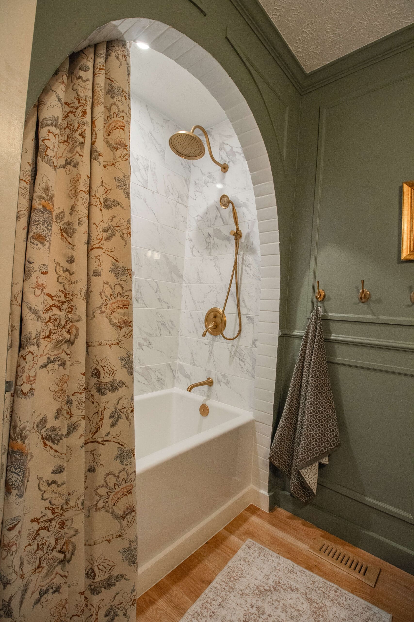 Dreaming of a unique bathroom makeover? Creating an arched bathtub alcove might be the perfect solution if you’re looking for a way to add classic elegance and charm to your space. Follow along as I take my basic, builder-grade guest bathroom and turn it into something truly special, starting with my DIY arched bathtub alcove.