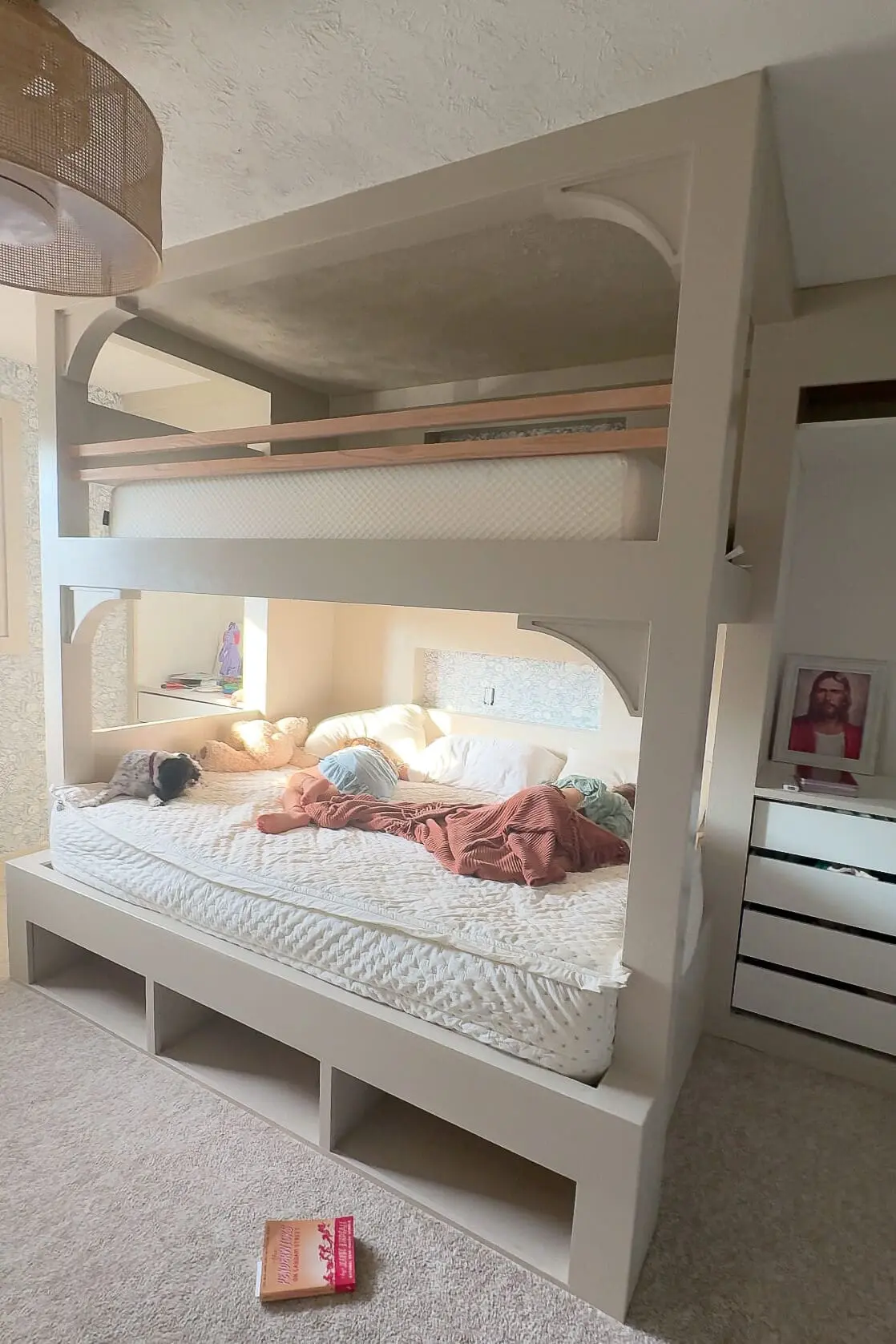 How amazing does the extra storage look on these DIY bunk beds? Everything feels custom and built-in, exactly how I envisioned!