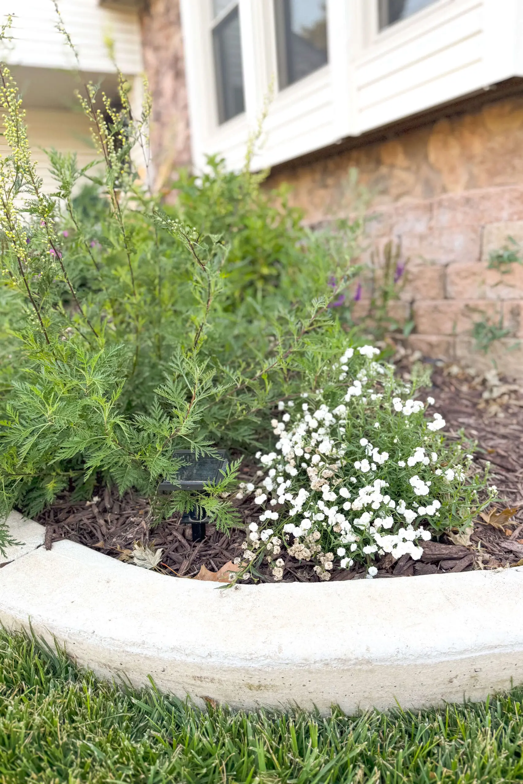 Flower beds should definitely be part of your yard designs! I’ve got two in my front yard that are bordered with DIY concrete curbing, and one in the park strip.