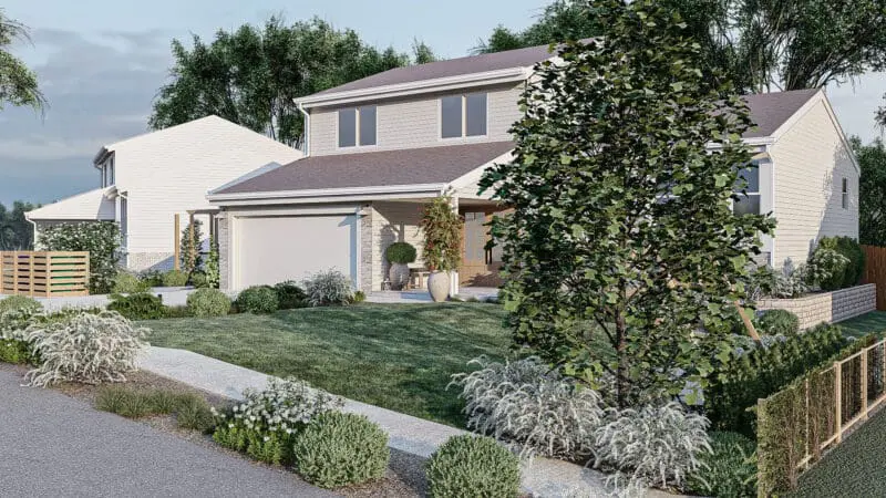 Check out the renderings they sent back—aren’t they stunning? They thoughtfully included future projects I hadn’t tackled yet, like garbage can storage and a trailer parking pad.