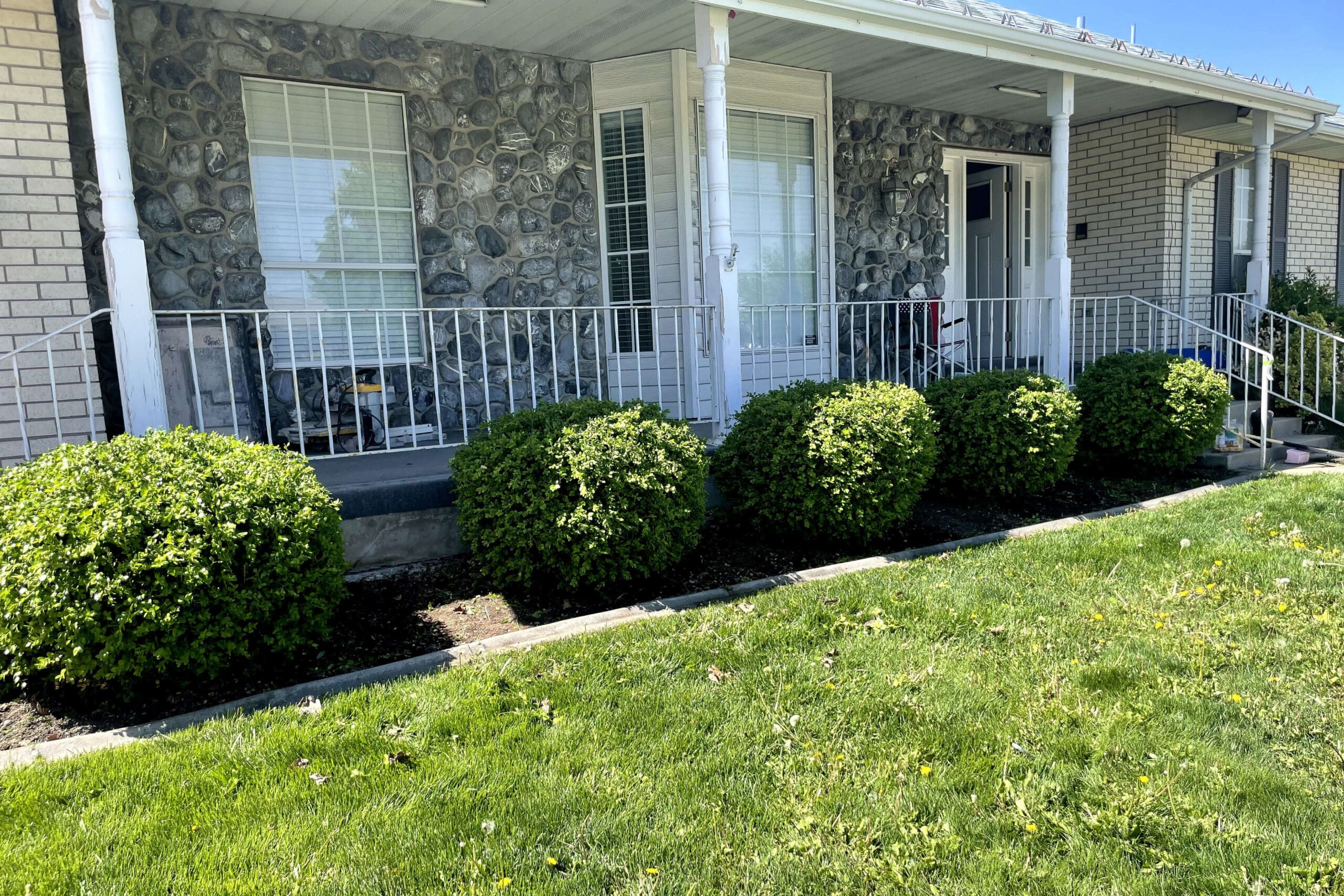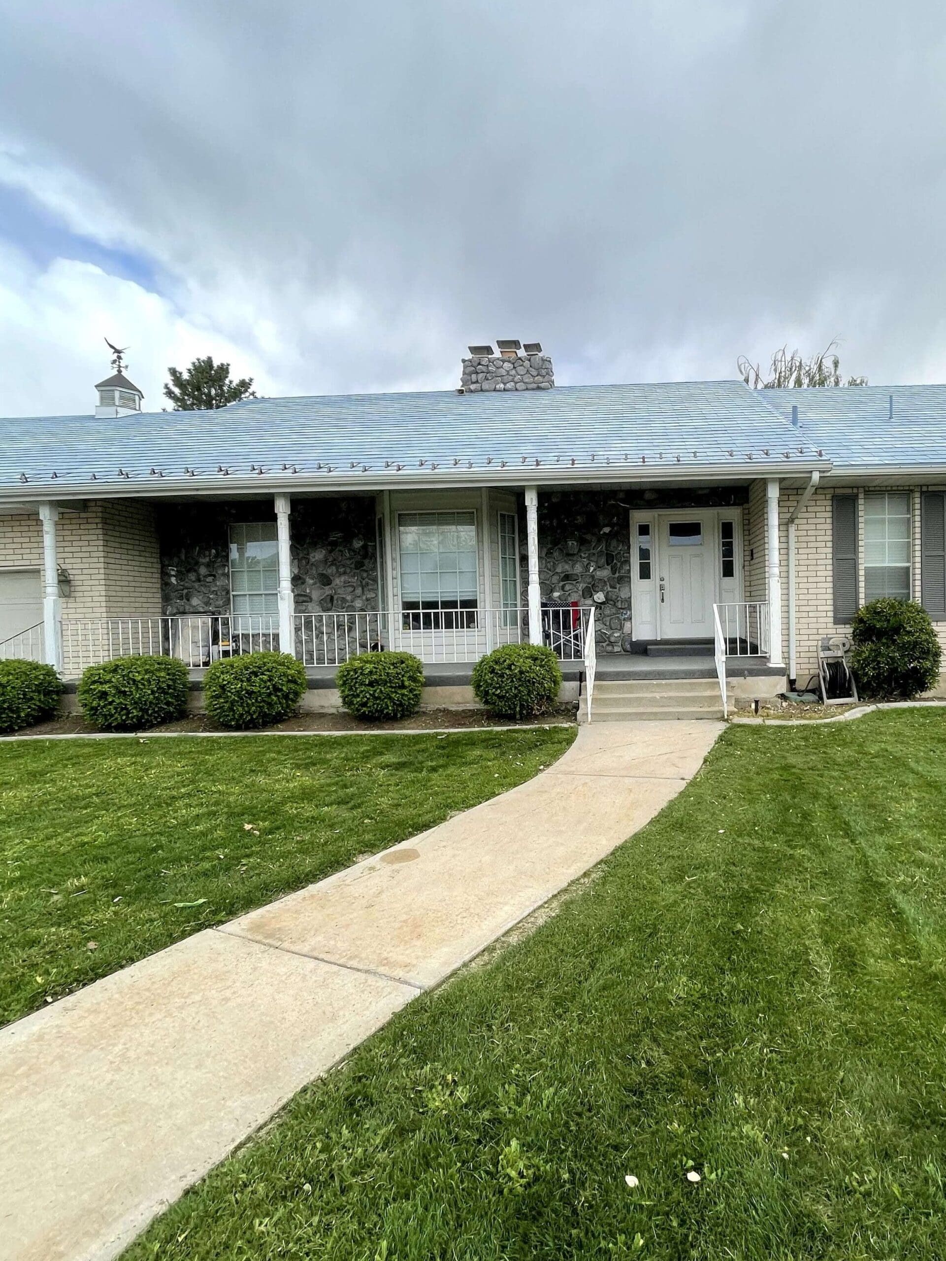 Here’s the true before photo. The bones were there – gorgeous porch, lots of natural light, and solid structure – but that dated stone exterior and the white window grids were seriously dragging the curb appeal down.