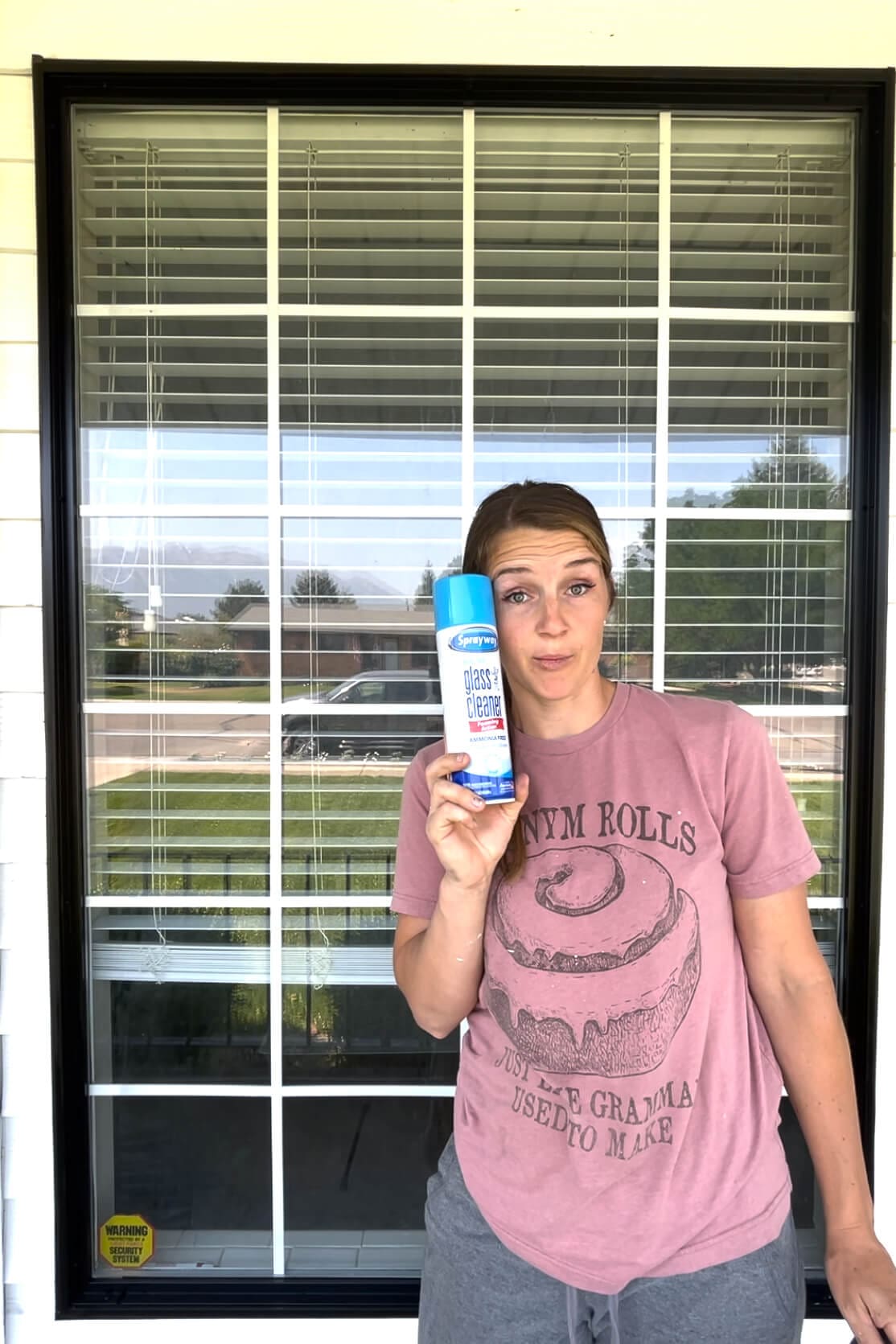 Then it was time to prep the glass. Before applying the vinyl to create the black window grids, I cleaned the glass really well. I used my favorite glass cleaner and a cloth, then went over the areas where the grid lines sit with a razor blade. You want the surface to be as clean and smooth as possible so that the faux black window grids stick and stay.