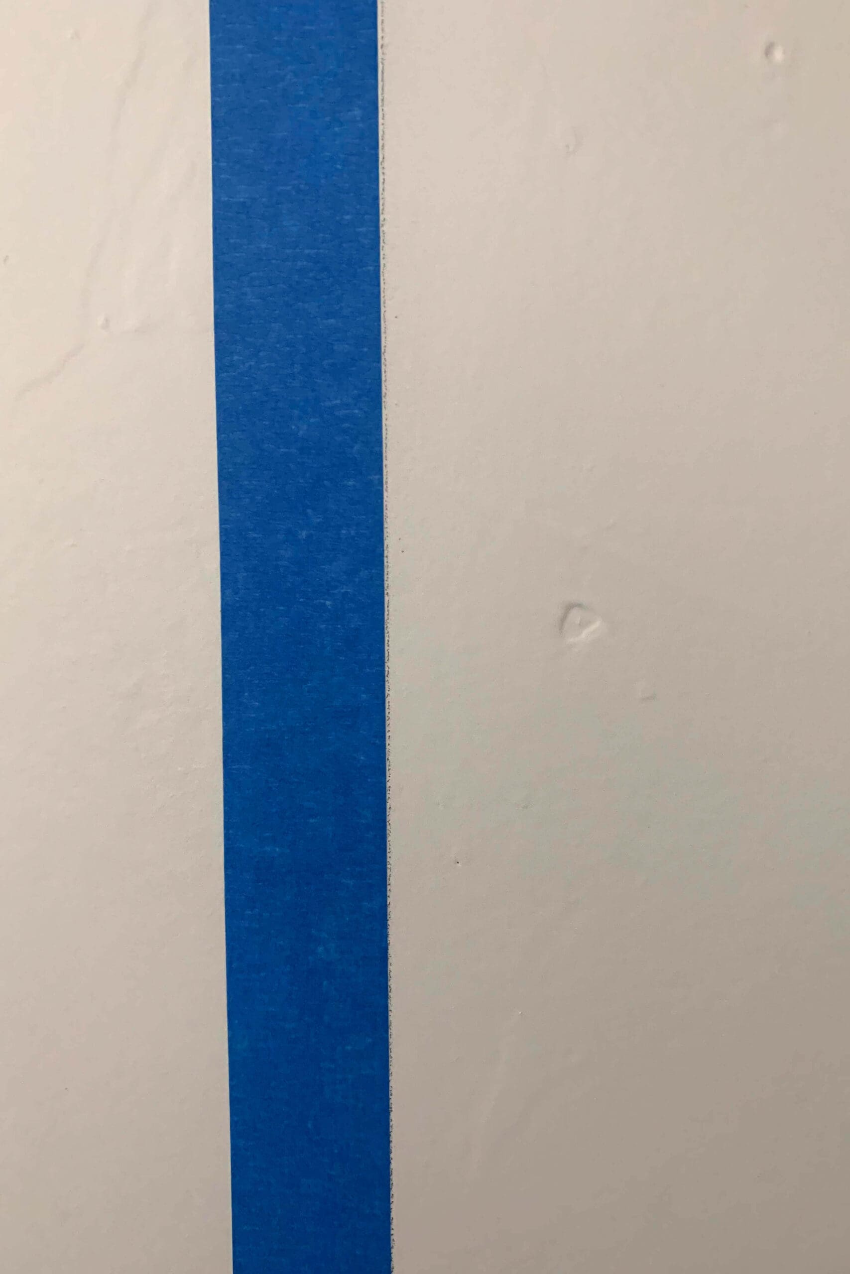Start with a clean, dry wall. Fill in any nail holes or imperfections (those little flaws will not be hidden under buffalo plaid). I used the existing white wall color as my base. If your wall isn’t already light-colored, start by painting it with your chosen base shade and let it fully dry.