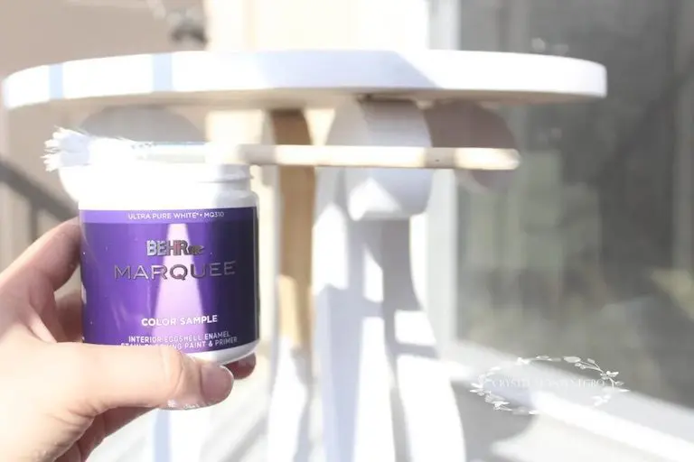 Because I already had the 1×8 and the paint, this whole project cost me about $10 for the 2x10x10 board. Is that a steal or what?! Oh, and see that painted chair, that round wooden frame and that throw pillow? I DIY’d them all! Check ’em out!