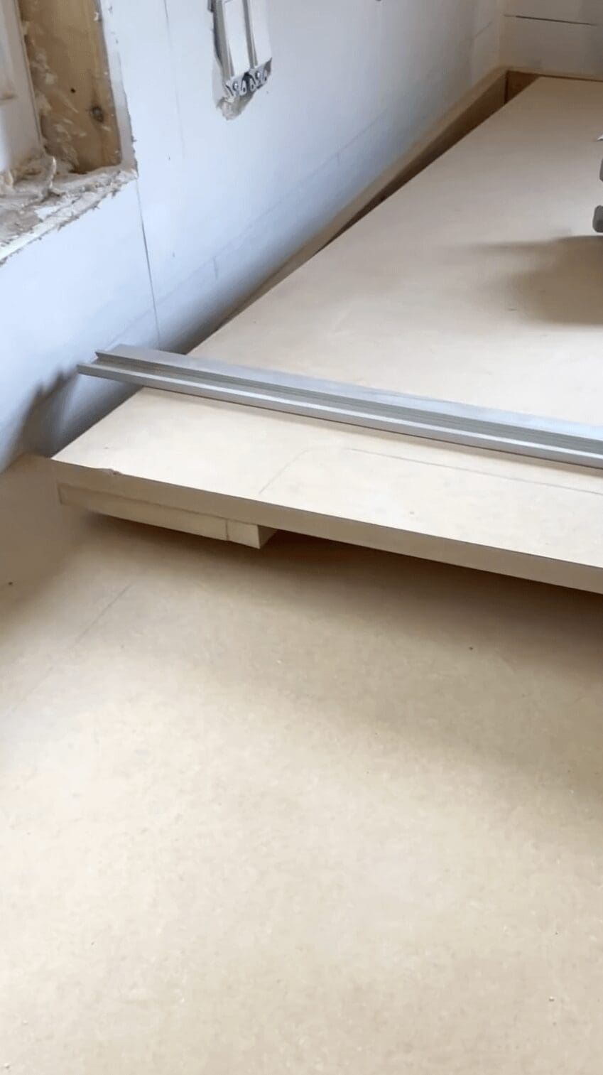 Using a circular saw, I cut the 4×8 sheets of MDF down to the sizes that I needed for my countertops (again…don’t use MDF, use plywood). Next, I had to make sure that they were level in both directions, front to back, as well as side to side. If there’s a slope, the epoxy will pool and look uneven. You can use shims to adjust the height if necessary. Long levels will work best for this.