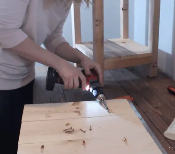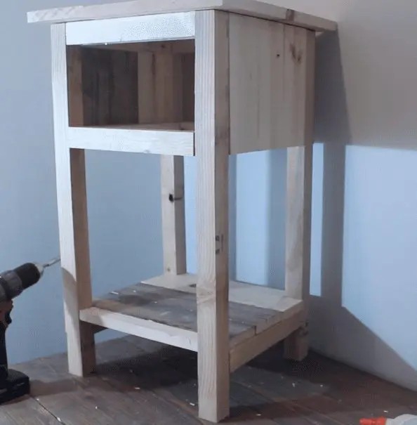 And, attach to the nightstand from underneath using 2″ screws.
