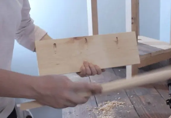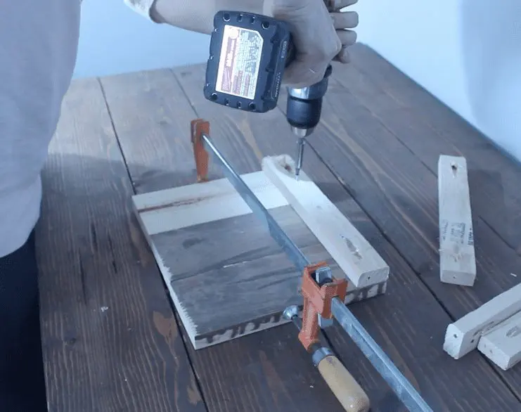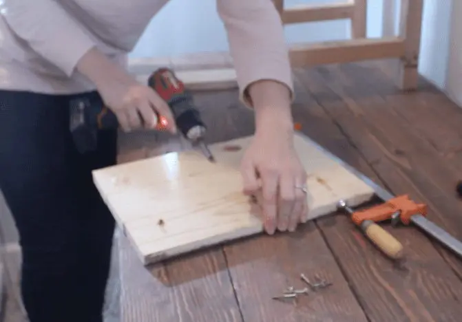 And then I drove a 2″ screw through the pilot hole to secure the two boards. Don’t forget about the glue!