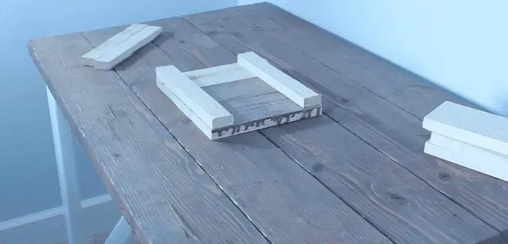 Screw a 1×2 onto the top and bottom of the boards with 1 1/4″ screws. Make two of these.