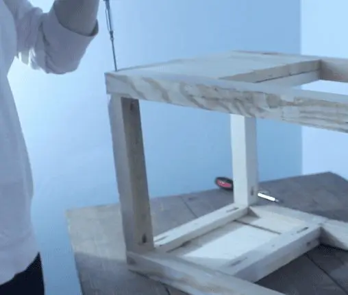 Repeat with all 4 sides. This part is where it’s especially important to get each side as square as possible, otherwise you’ll end up with a wobbly nightstand. Make sure you’re working on a flat surface and that all legs lay flat on the table.