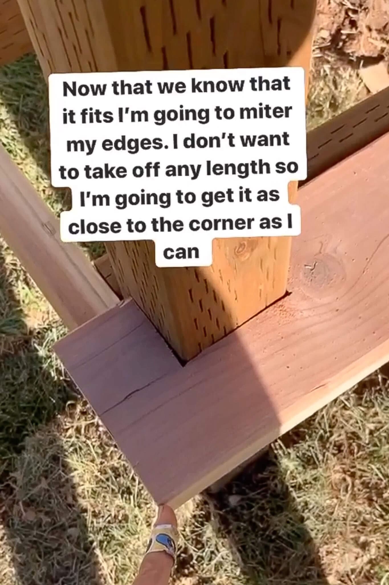 Once those were cut, I mitered the ends so all the corners met cleanly. Everything looked great dry fit, so I screwed the trim boards into the rim joists.