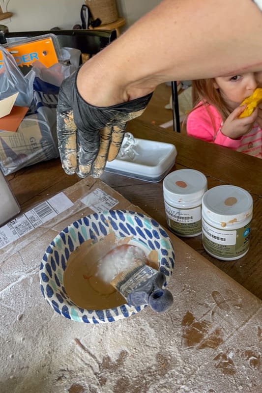 Now for the magic! In a small bowl, mix your paint and baking soda together in a 1:1 ratio. The baking soda is what gives the paint that amazing, gritty texture that mimics real clay.