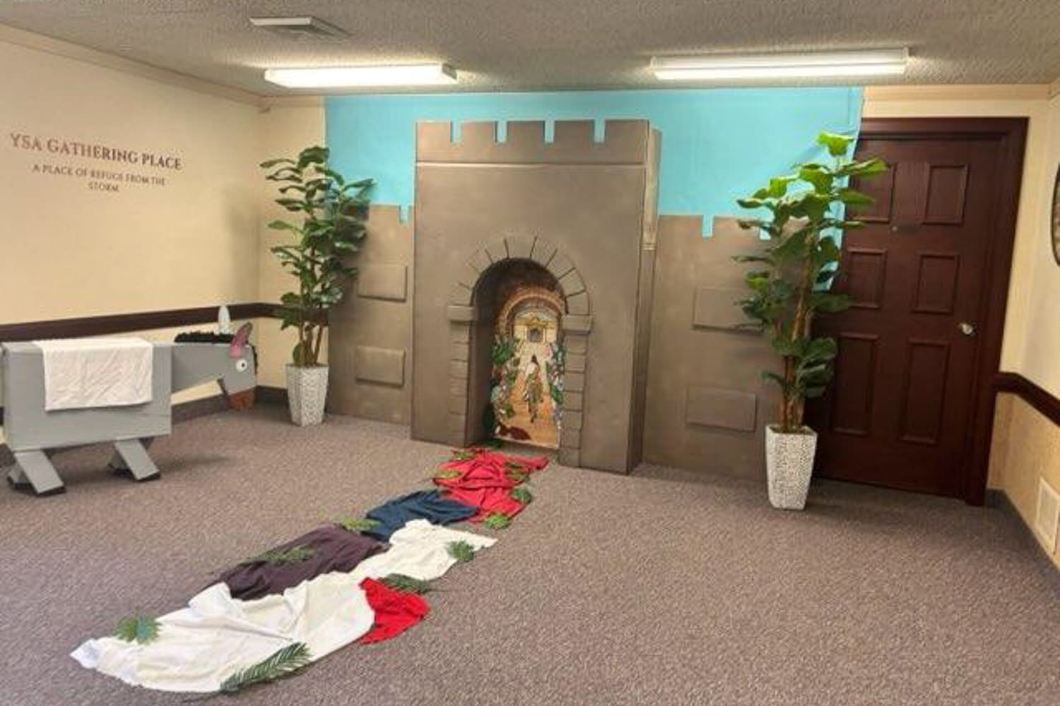 Set the Scene: Palm leaves and fabric laid on the ground marking the path for Jesus. Have each group welcome the next by waving palms and saying: “Hosanna! Blessed be the name of the Most High God!”