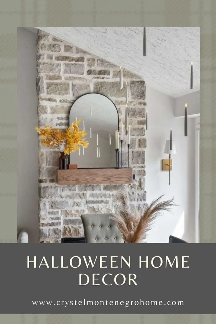 On one side of the mantel, I added a spooky crow perched among some gnarly faux branches. (I tried finding the perfect sticks in my yard but eventually turned to the internet) The branches and candles, bring just the right amount of eerie elegance to the space.