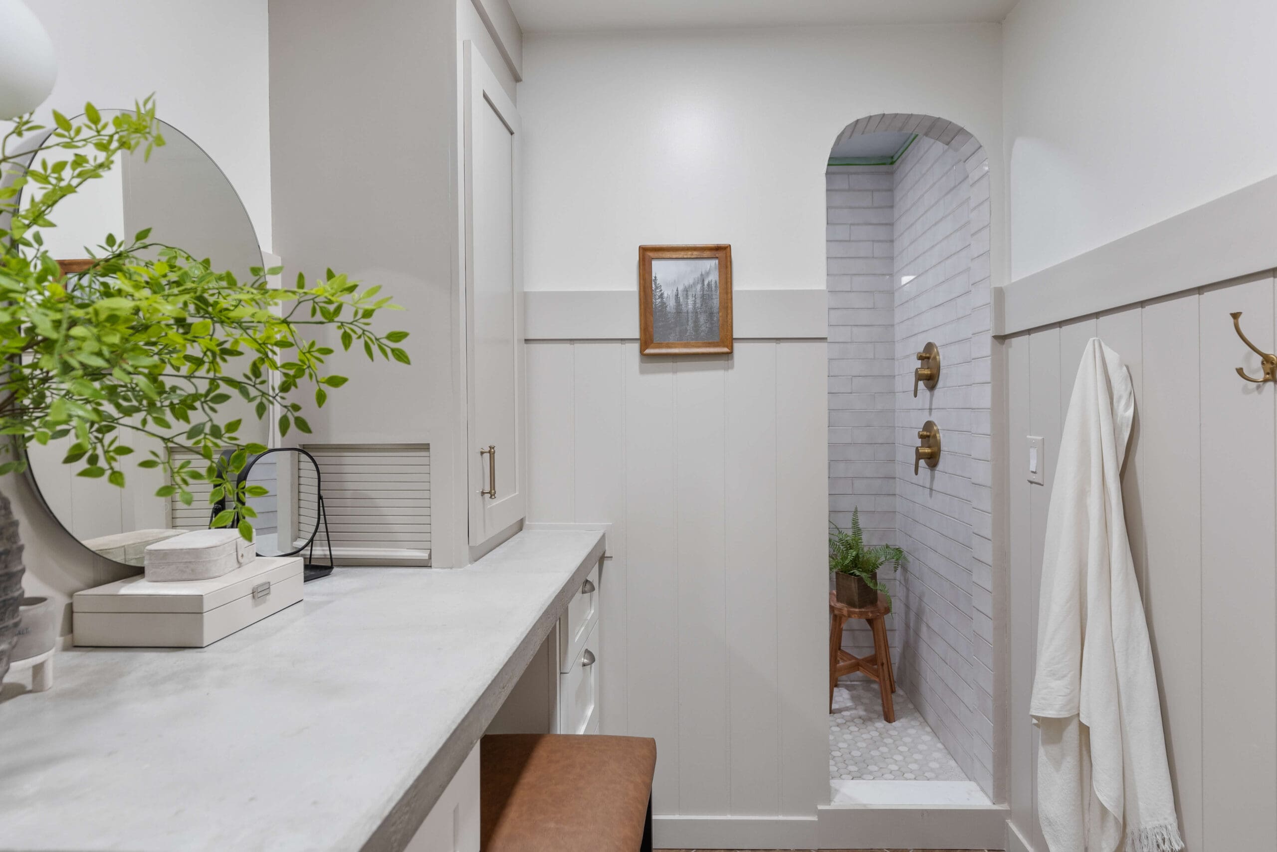 One thing about a bathroom – you can never have too much storage! When designing my sit-down vanity, I wanted to maximize every inch. So, I built a counter cabinet right on top, creating extra storage and a dedicated hair tool garage for my curling irons and blow dryer. Best part? This project is simple and totally doable. Keep reading for the details!