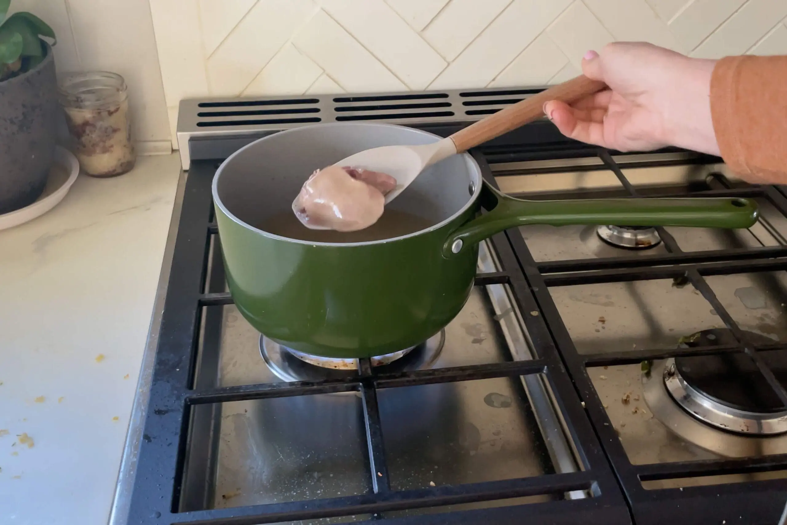 Next up, I’m gently simmering the chicken livers in the bone broth until they’re cooked through. Then I’ll turn off the heat and let everything cool down.