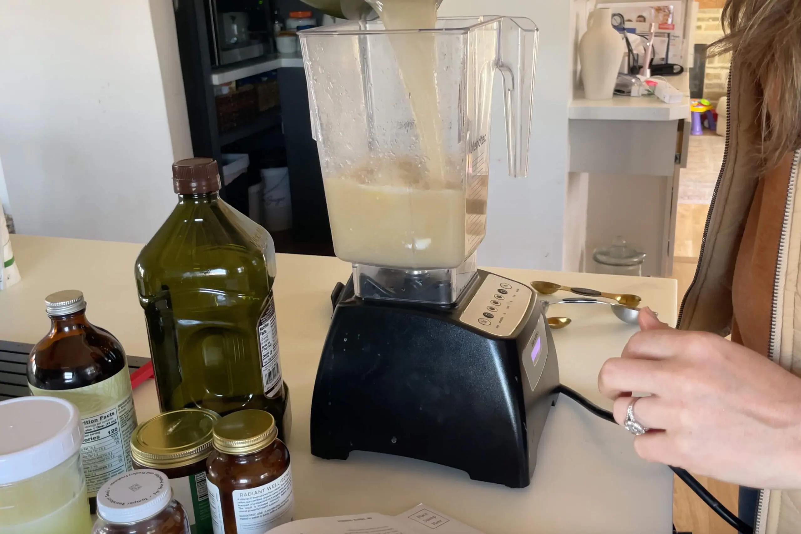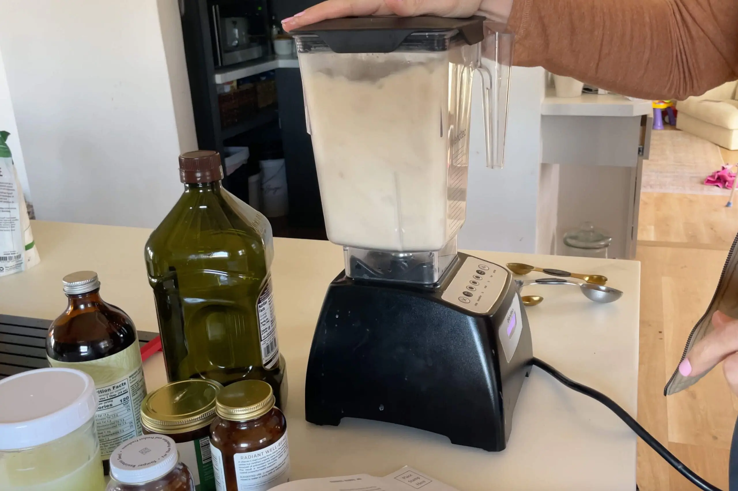 Take the rest of the ingredients from this homemade baby formula recipe and add them to the blender and mix well.