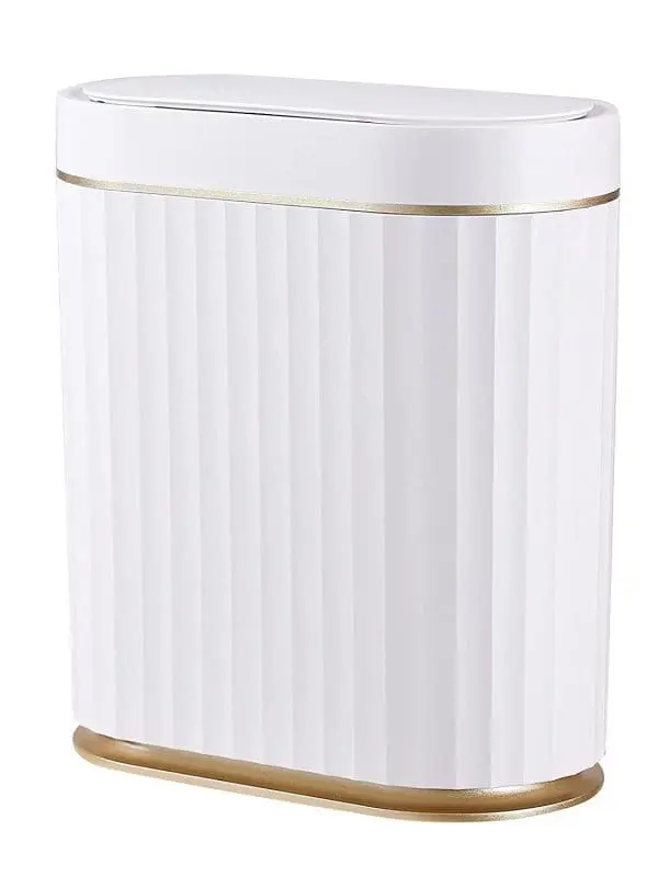Bathroom Trash Can With Automatic Lid – It’s silly to say a garbage can is pretty, but I don’t care. This garbage can is pretty. Bonus: it keeps the dog out.