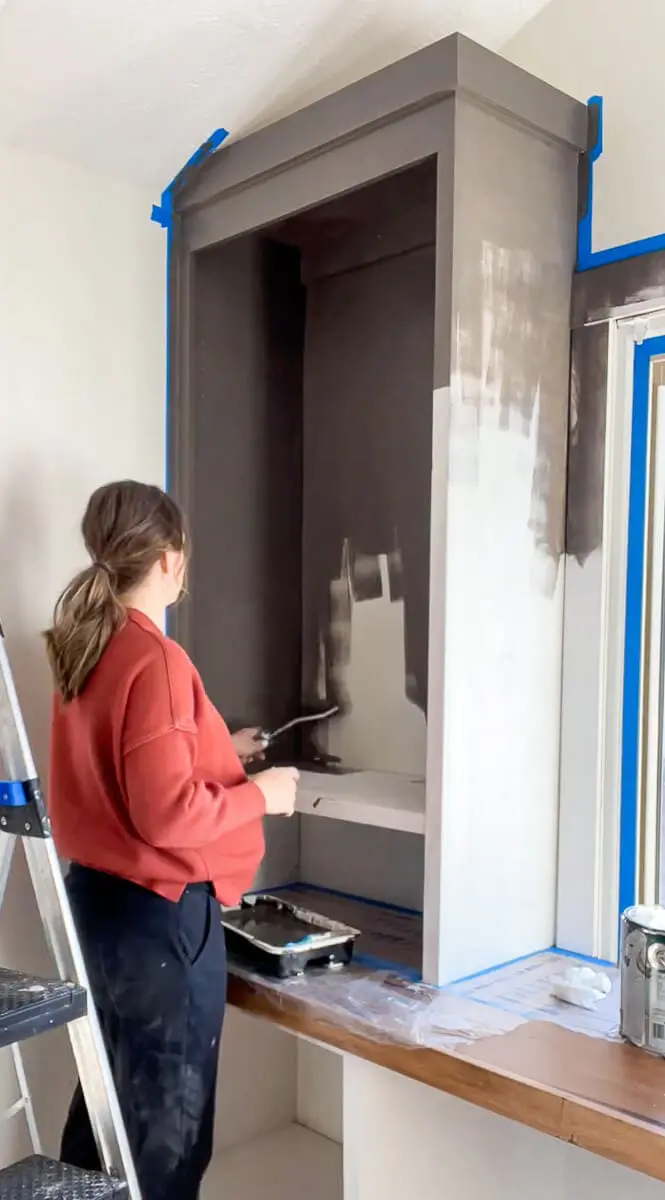 After fully drying, I taped everything off, like the walls and the floor. Then I caulked and caulked and caulked. Every corner was caulked except what touched the floor. Baby wipes are my secret weapon when wiping off the excess caulk on these home office built ins.