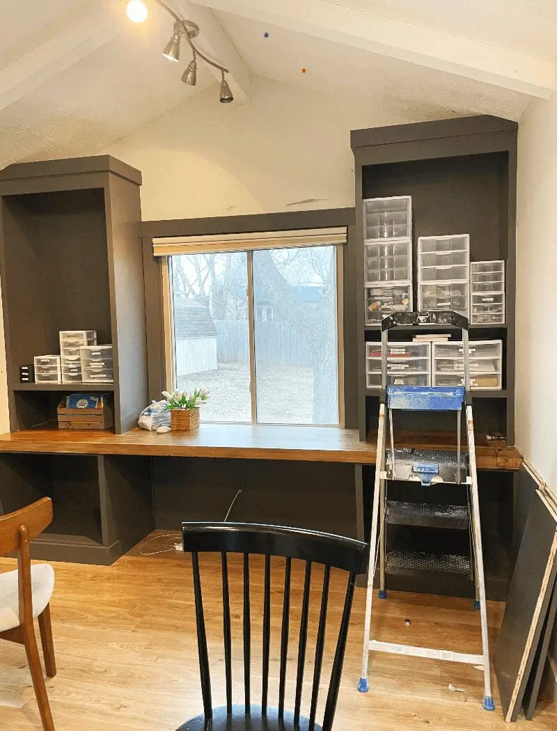 When I built the desk for the home office built ins, I had to get creative.