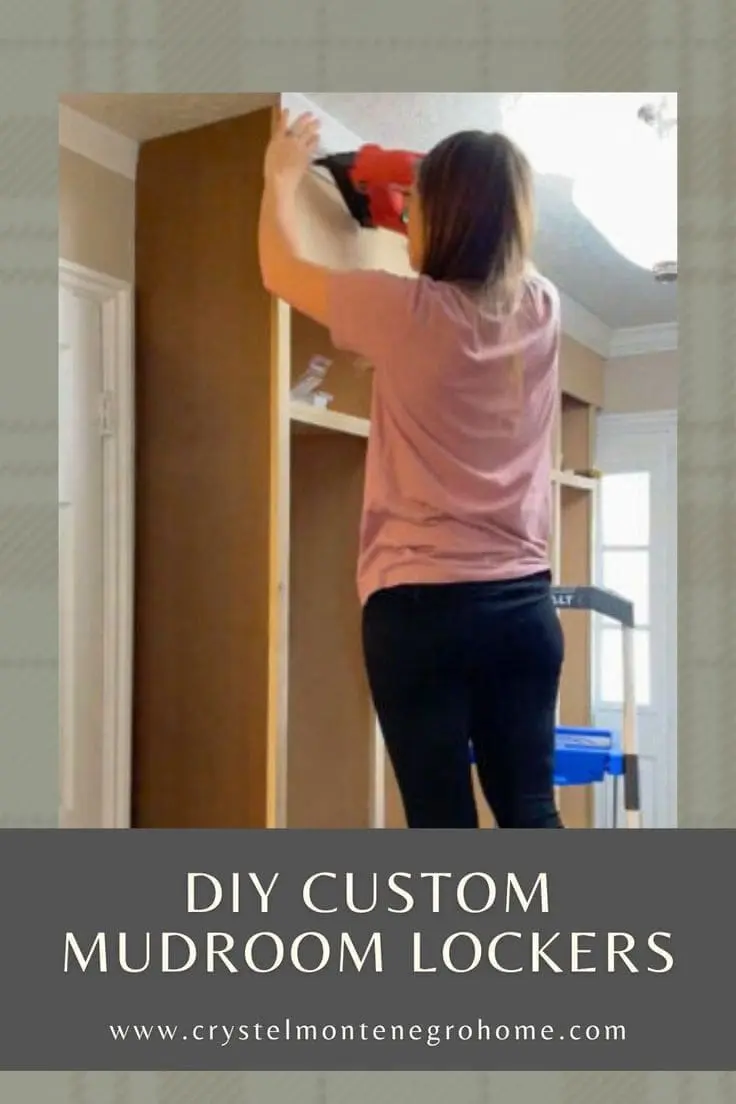 After leveling, I secured the base to the wall studs with screws, then lifted the mudroom lockers onto the base and attached them. To ensure stability, I also screwed the unit into the wall studs at the top.