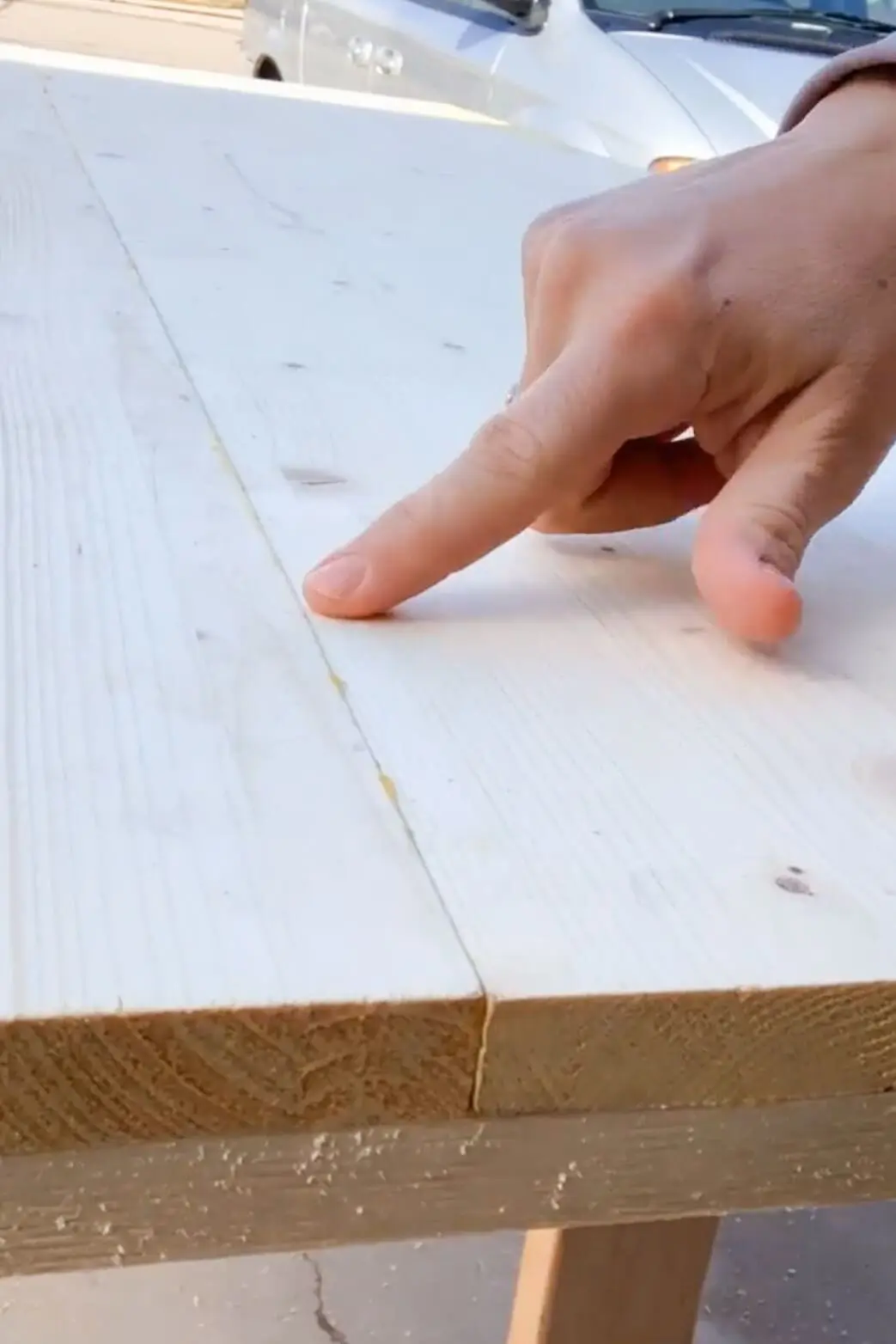 Dining tables usually fall between 36-40 inches wide, but pine common boards don’t come that wide. No worries, though! I grabbed two 20-inch boards and joined them together to create my perfect tabletop.