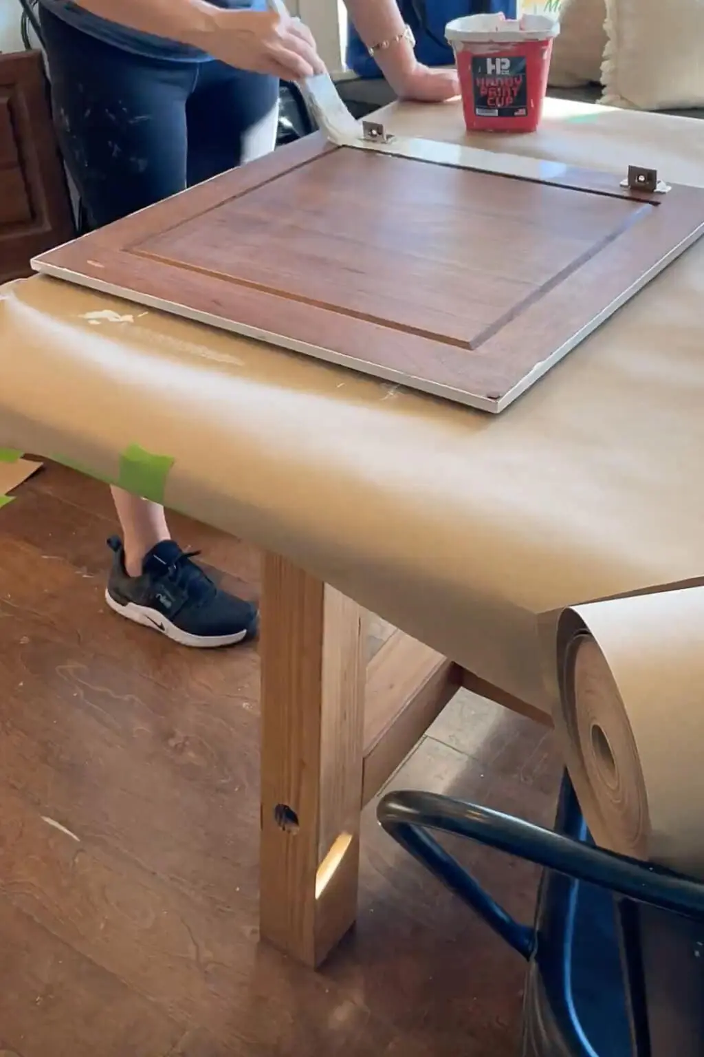 Before staining, I applied pre-stain wood conditioner to the tabletop.