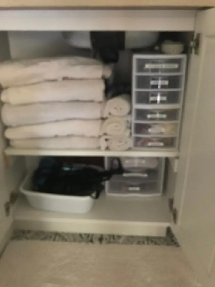 I also built an extra shelf under the sink in our bathroom vanity because it was so tall and there was so much wasted space around the plumbing!