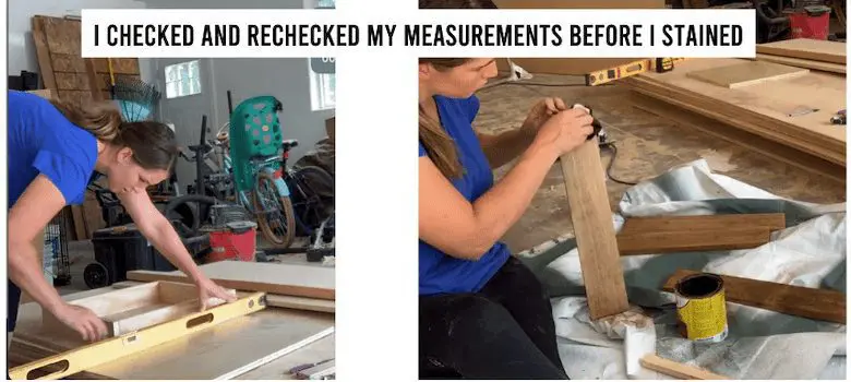 I positioned my small level on top of the lip spacer and, after ensuring it was level and flush. It was secured using wood glue and 1 inch screws, which weren’t long enough to end up poking through the cabinet wall.