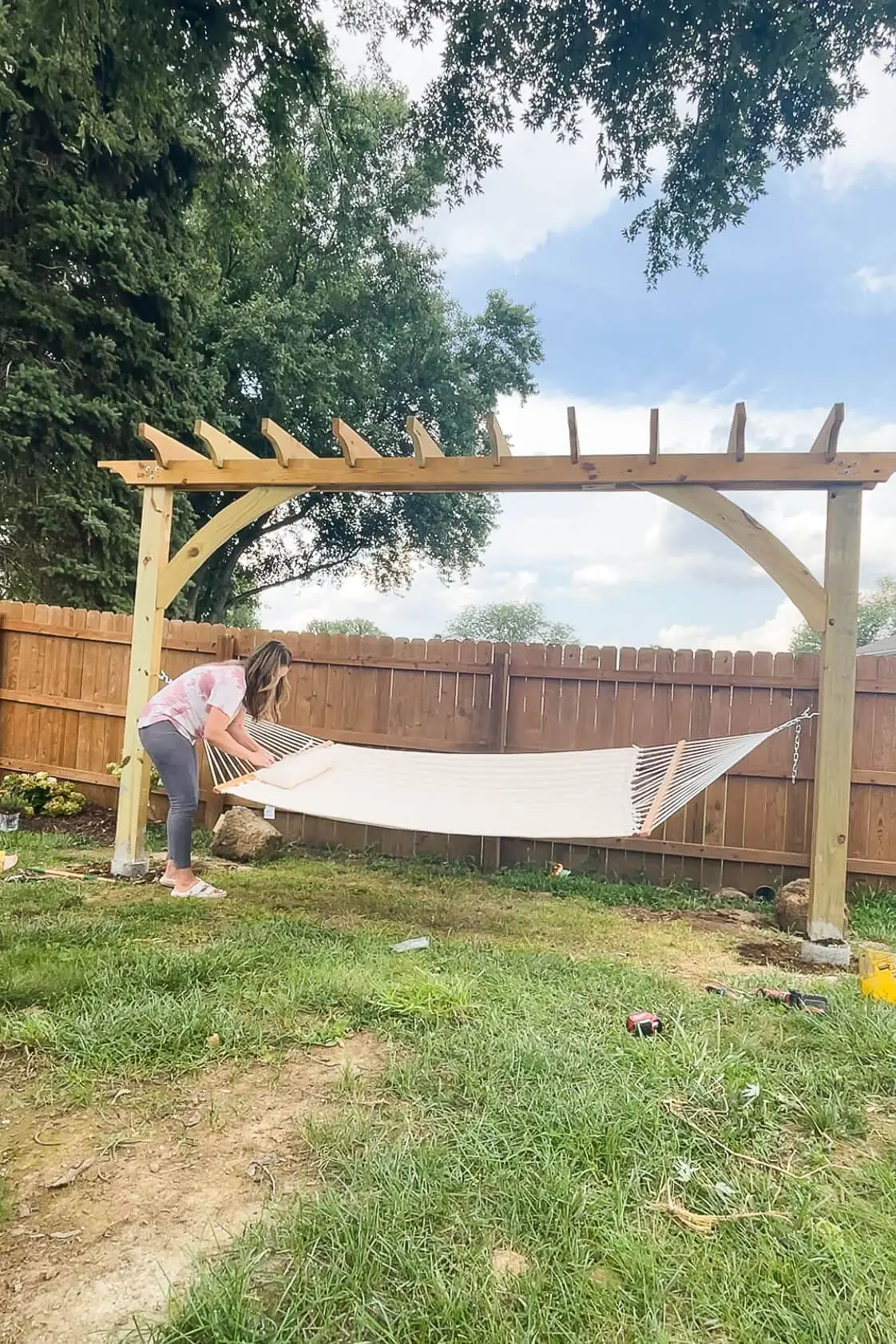 Looking for more outdoor projects? I have a full tutorial on how I made my backyard hammock stand, as well as a post showing you how we transformed our unused side yard into a veggie garden.