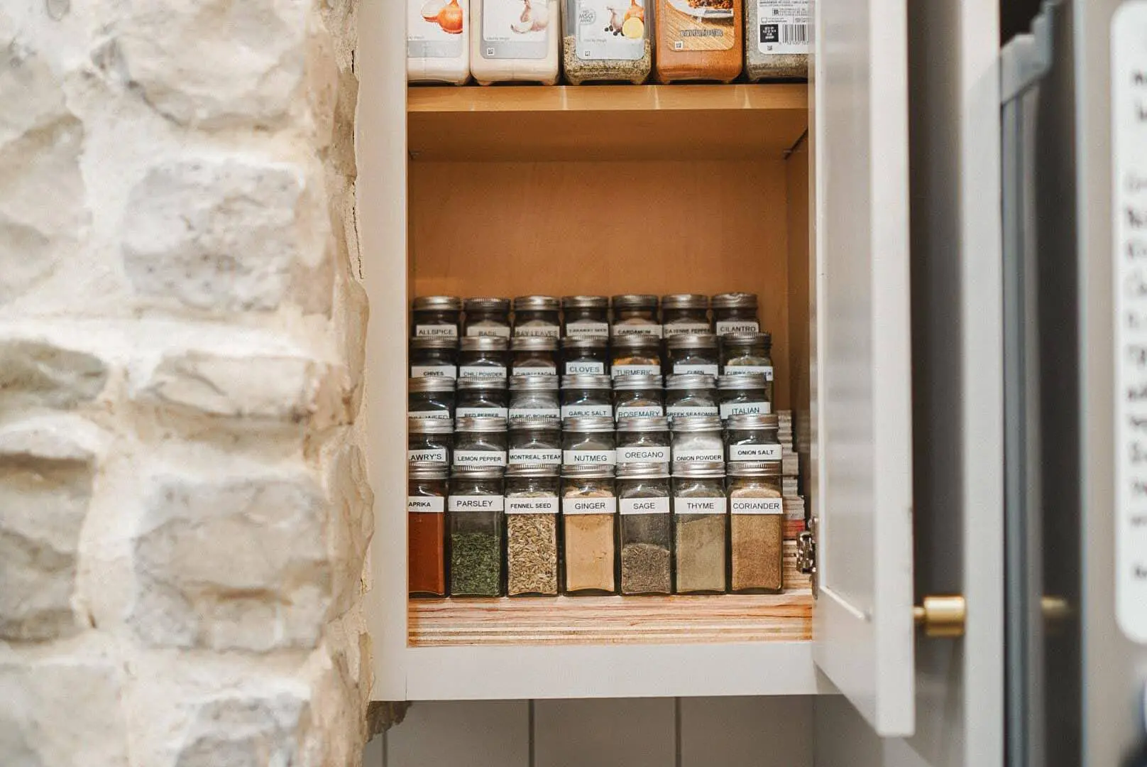 A lot of DIY is trial and error. You may have a bigger cabinet opening where this is not an issue, or you may have to go back and cut a little more off like I did. If I had known I was going to do this while we were designing the kitchen, I would have made sure to do this part before the countertops were installed so I could just lower the shelf in from the top.