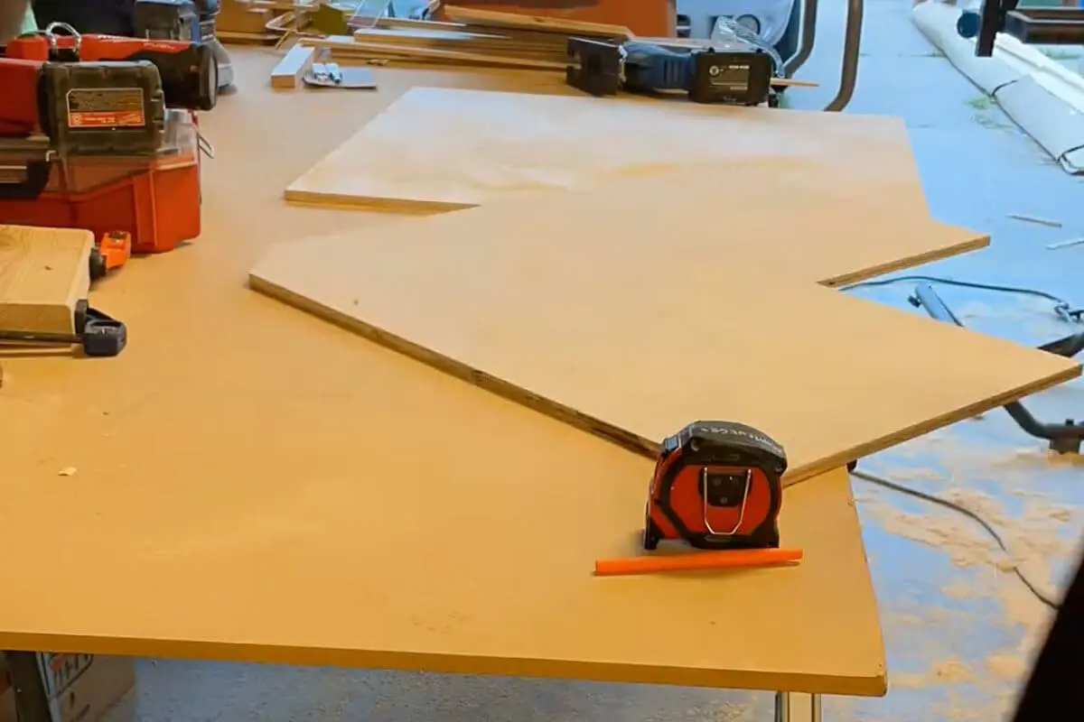 First I transferred all of my dimensions to my sheet of plywood, and then I drew out the shape I needed to cut. If you do not currently have a T Square it would be great to invest in one. It is perfect for a project like this where you want to make sure that you are actually drawing a straight line at a square angle.