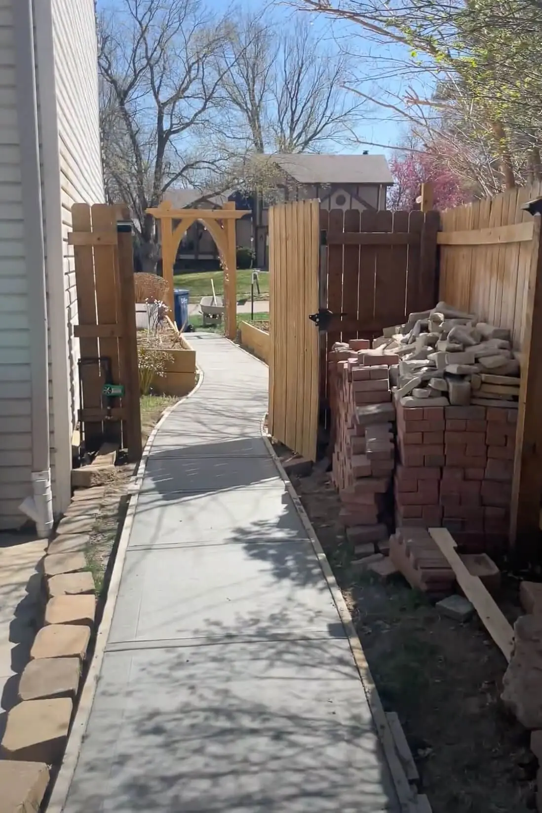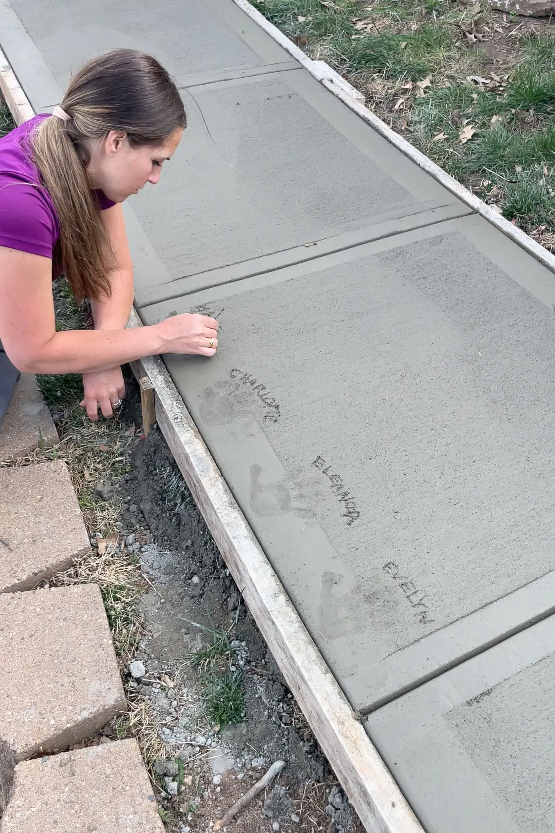 The next day, the concrete had dried enough for us to begin walking on and using our new sidewalk.