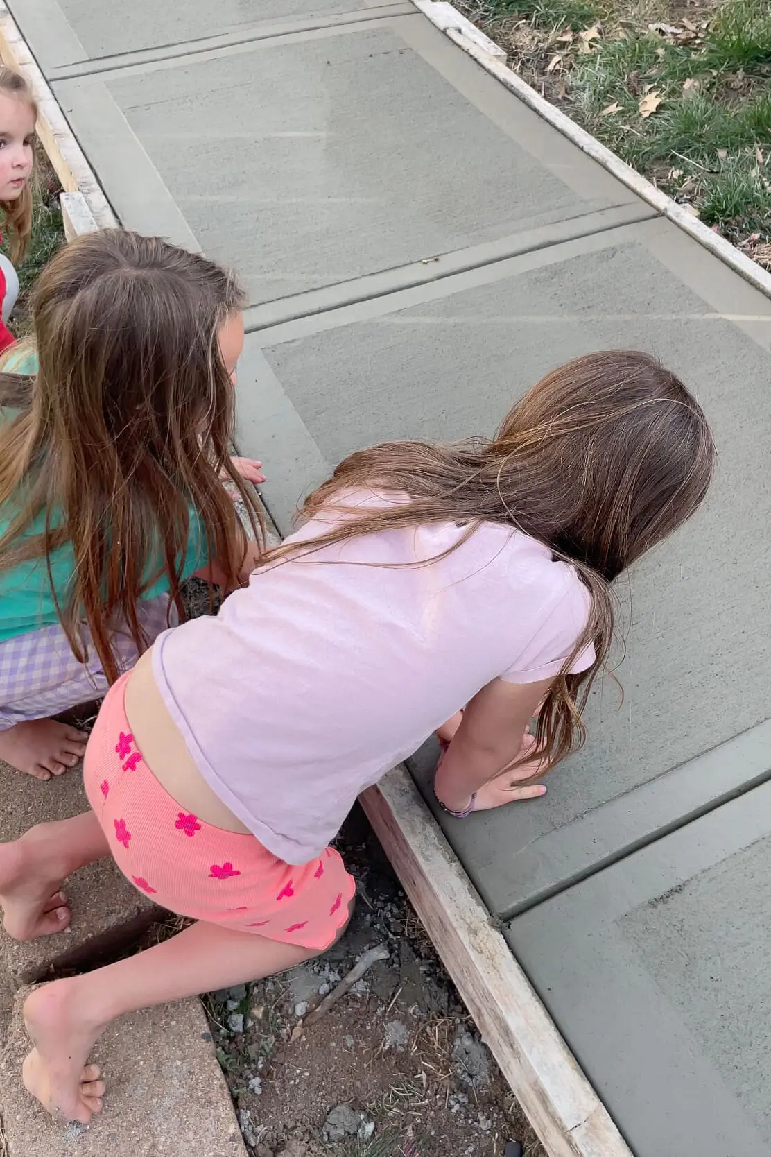 Once the guys were done, we of course had to run out and add our own special touch before the concrete sidewalk had a chance to dry.