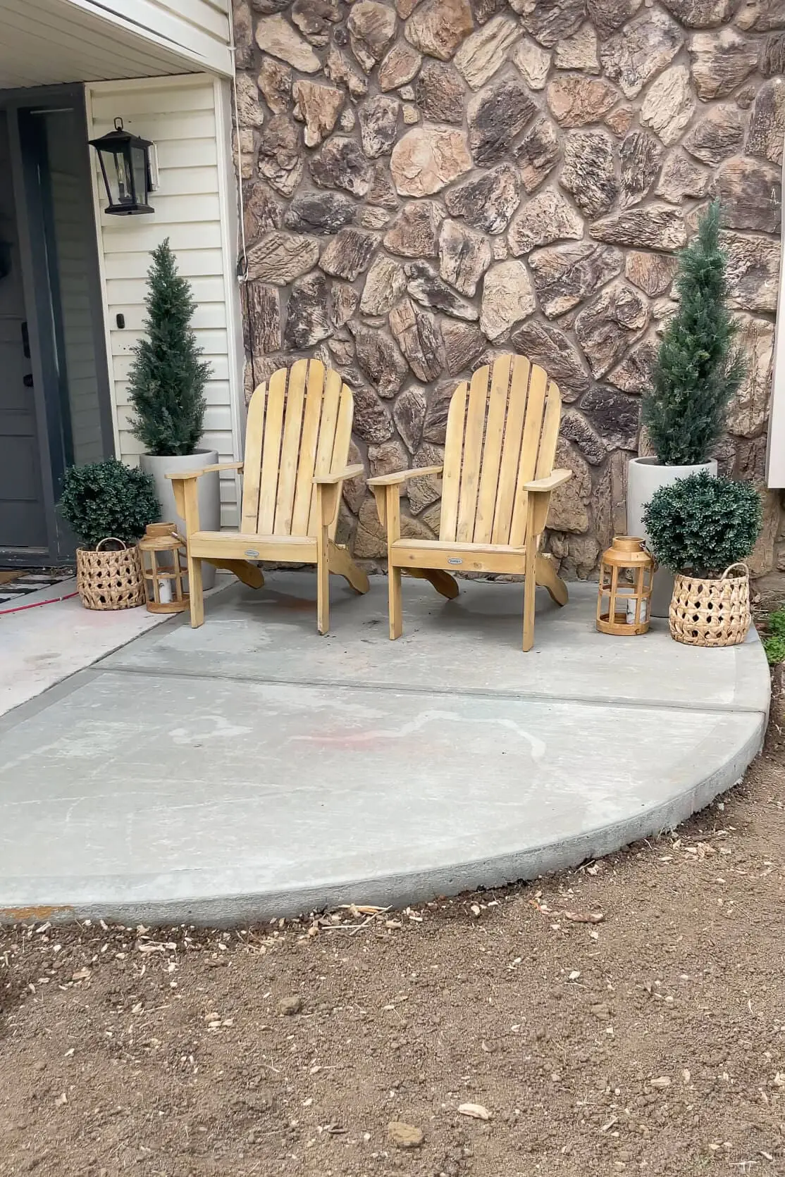In addition to the sidewalk, we also hired them to put in a porch extension up front. This area was just an unused flower bed I hadn’t done anything with since moving in. Since our front entryway isn’t that big (you can get a better look at it here), extending it to the side will be a better use for our family. I can’t wait to add a porch swing and decorate this space for the holidays.