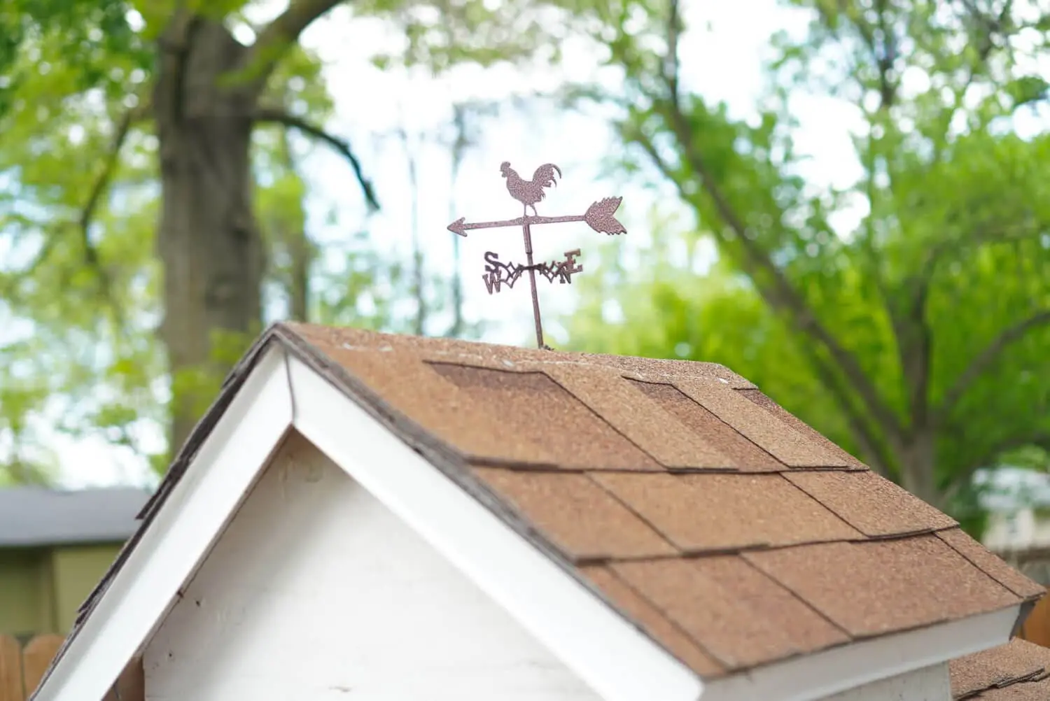 Lastly, we layered roofing shingles (a bonus leftover in the shed from the previous owners).