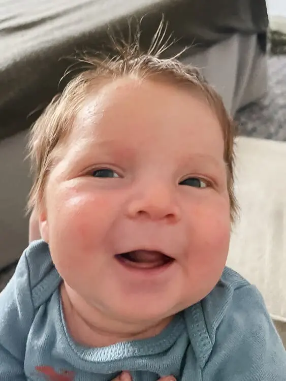 He’s a hungry boy and seems to be much hungrier than my other girls were; I can barely keep up! He is growing like a weed and already needs to size up out of his newborn diapers and clothing.